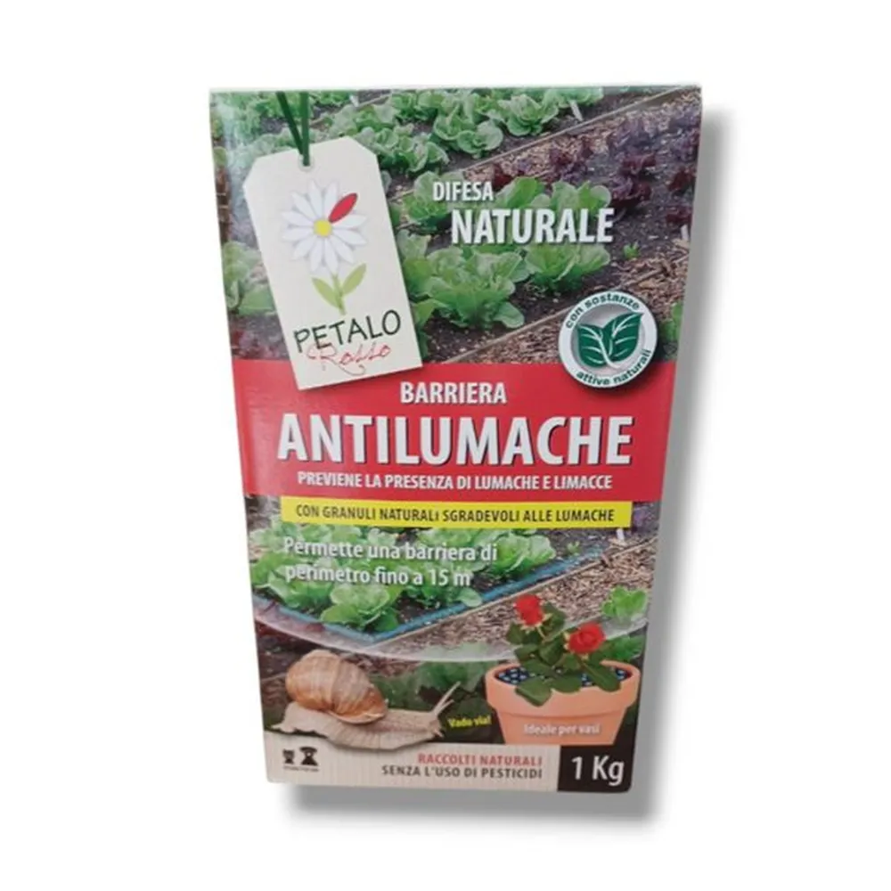 La barriera antilumache naturale Petalo Rosso è la soluzione ideale per proteggere in modo ecologico ed efficace orti, giardini, serre e aiuole dall’invasione di lumache e limacce. Questo innovativo prodotto, in formato da 1 Kg, è costituito da speciali granuli naturali che formano una barriera fisica insuperabile per questi molluschi dannosi, evitando così l’utilizzo di pesticidi chimici nocivi per l’ambiente. La barriera antilumache naturale Petalo Rosso è indicata sia per hobbisti che per giardinieri professionisti che desiderano adottare pratiche di coltivazione sostenibili e sicure.