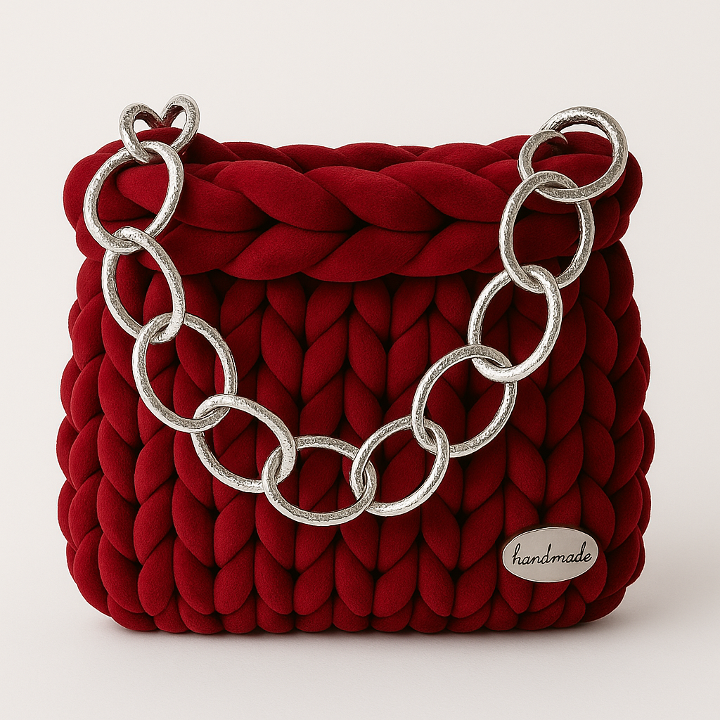 Borsa Artigianale in Maglia di Velluto Rosso con Catena in Metallo
